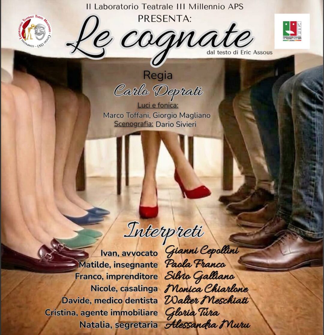 La commedia di Eric Assous “Le cognate” racconta la storia di tre fratelli – Ivan, Davide e Franco – e le loro rispettive mogli, Matilde, Cristina e Nicole, che si preparano a una cena formale, ma la serata è sconvolta dall’annuncio dell’arrivo di Natalia, la segretaria di Franco. Le mogli iniziano a indagare sulla misteriosa donna, portando a un crescendo di situazioni comiche che culminano in un colpo di scena finale inaspettato, rivelando le dinamiche nascoste e le meschinità all’interno della famiglia.